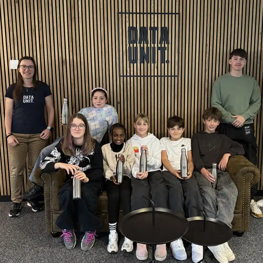 Zum Abschluss des Tages gab es für alle Kinder ein kleines Dankeschön: eine DATA UNIT Trinkflasche und einen Kinogutschein – eine Erinnerung an einen aufregenden Tag voller neuer Eindrücke.
